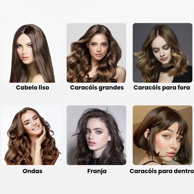 Esta escova é adequada para vários tipos de cabelo, mas é importante notar que cabelos muito encaracolados ou grossos não são adequados para este produto!